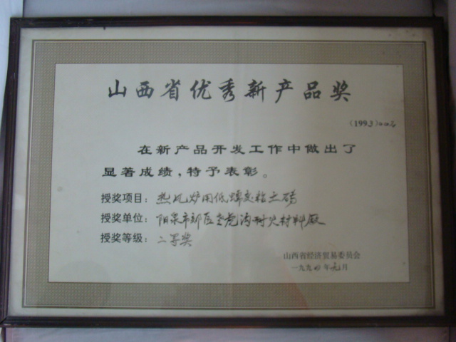 熱風(fēng)爐用低蠕變高鋁磚、高荷軟高鋁磚獲省科技進(jìn)步二等獎(jiǎng),微膨脹高鋁磚列入火炬計(jì)劃項(xiàng)目,炭素焙燒爐用特種高鋁磚已批準(zhǔn)國(guó)家專利